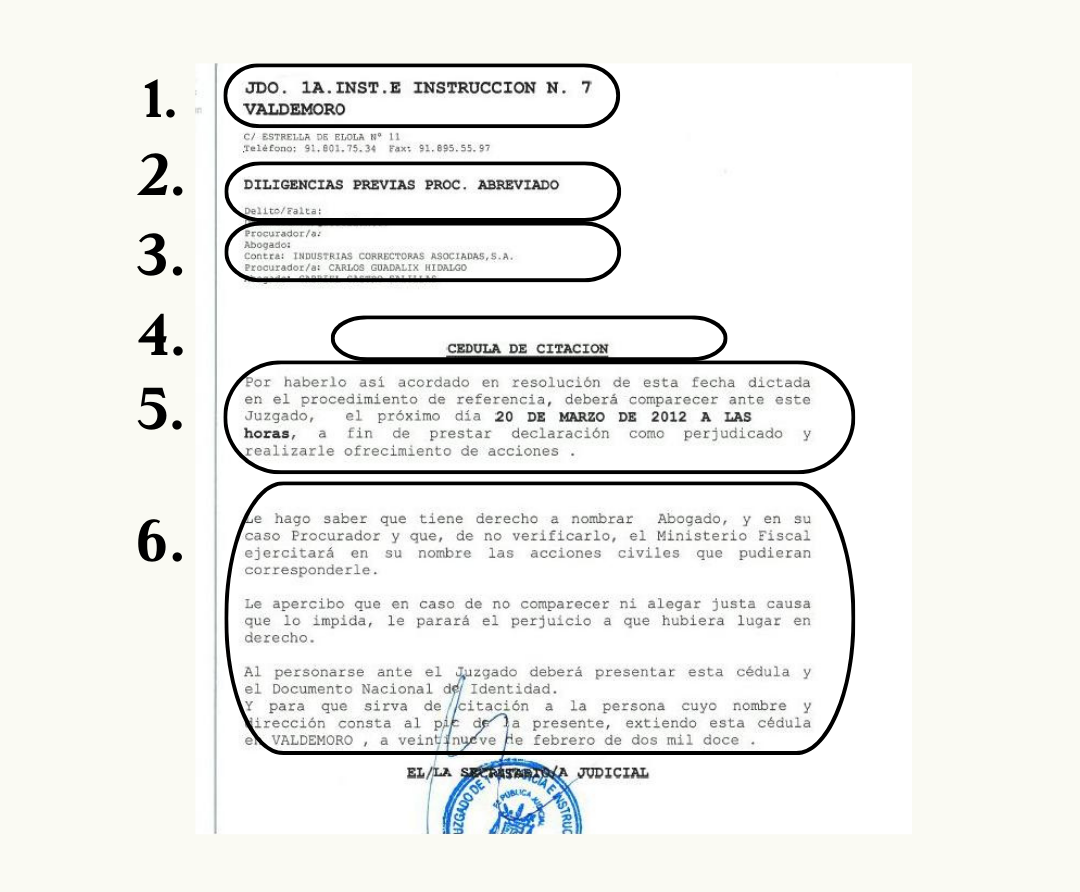 ¿Qué significa cada dato de la citación judicial?